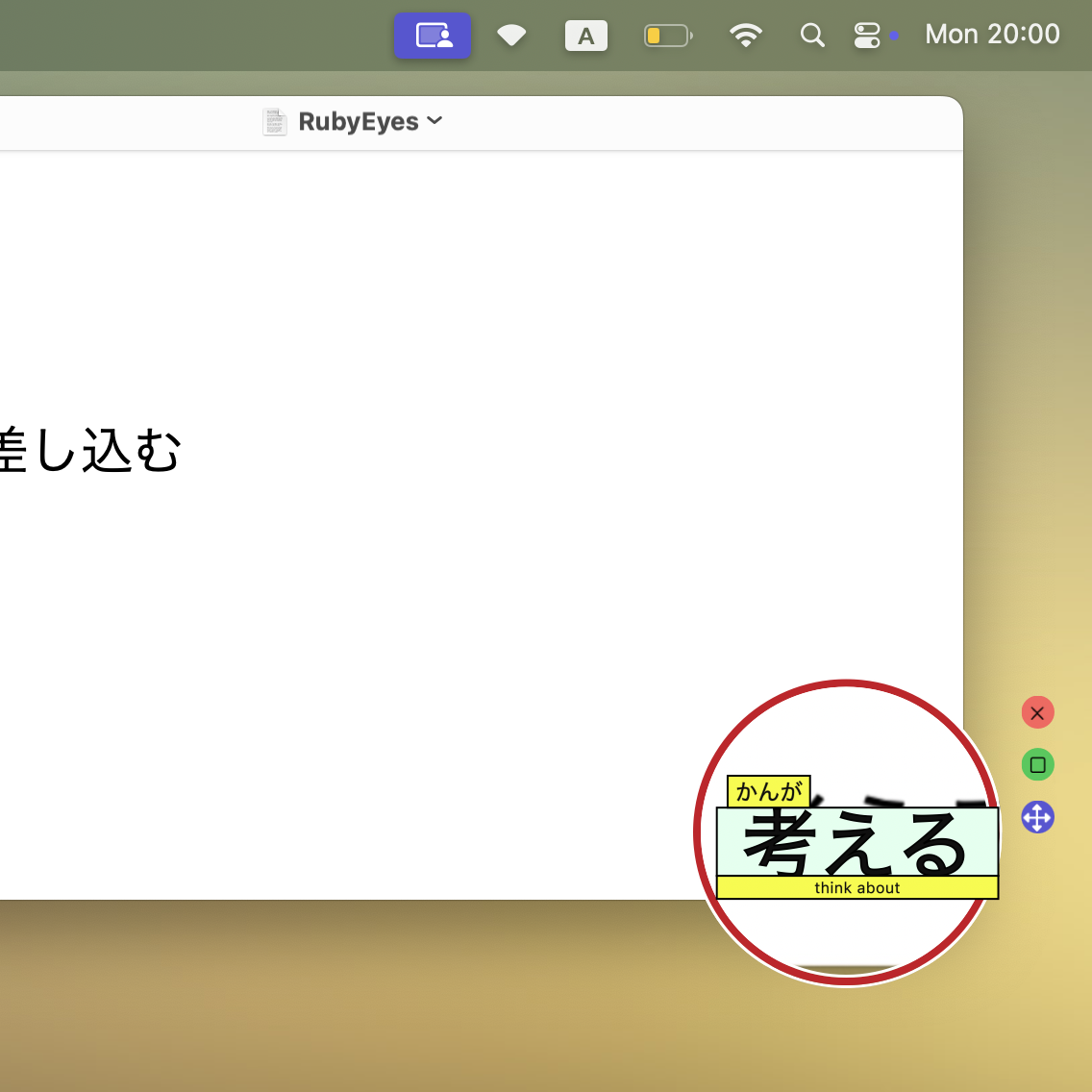 RubyEyes is a MacOS tool for intermediate Japanese learners, even for low intermediate learners, it sits on the menubar accessible from any app, it providing OCR translation and furigana generation in Japanese, it helps Japanese learners to have more immersion with focused quick translation